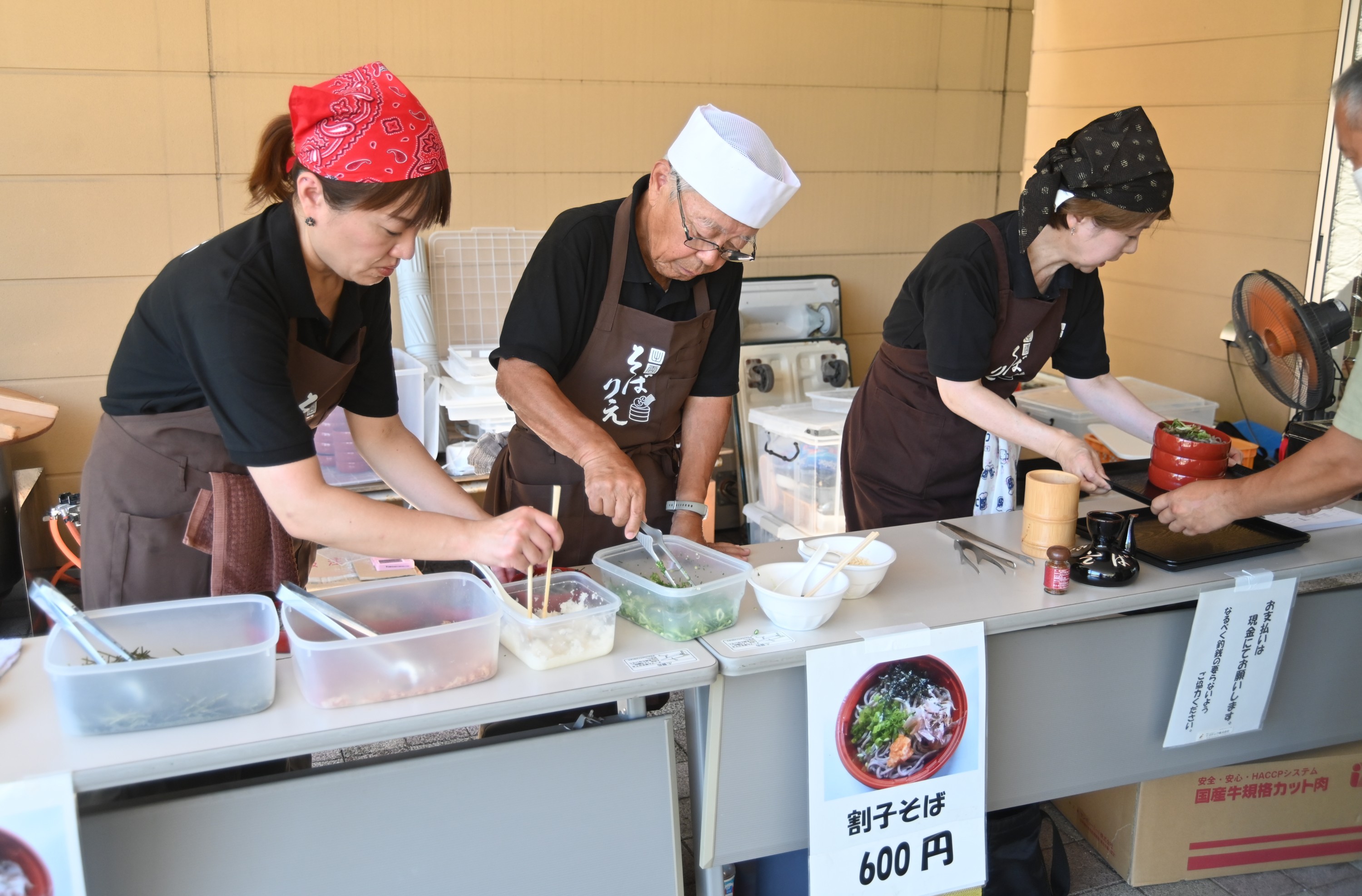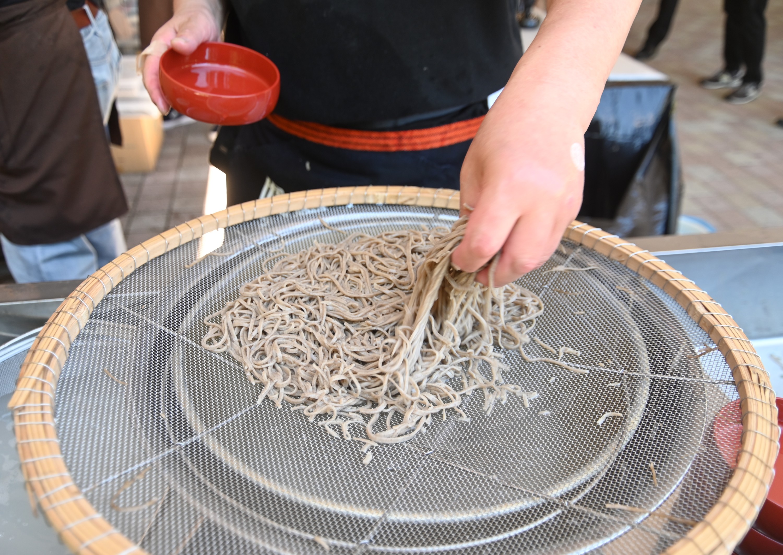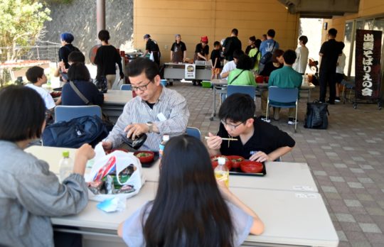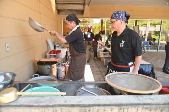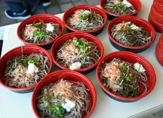 そこで、打ち立て茹でたての割子そばを提供しました。